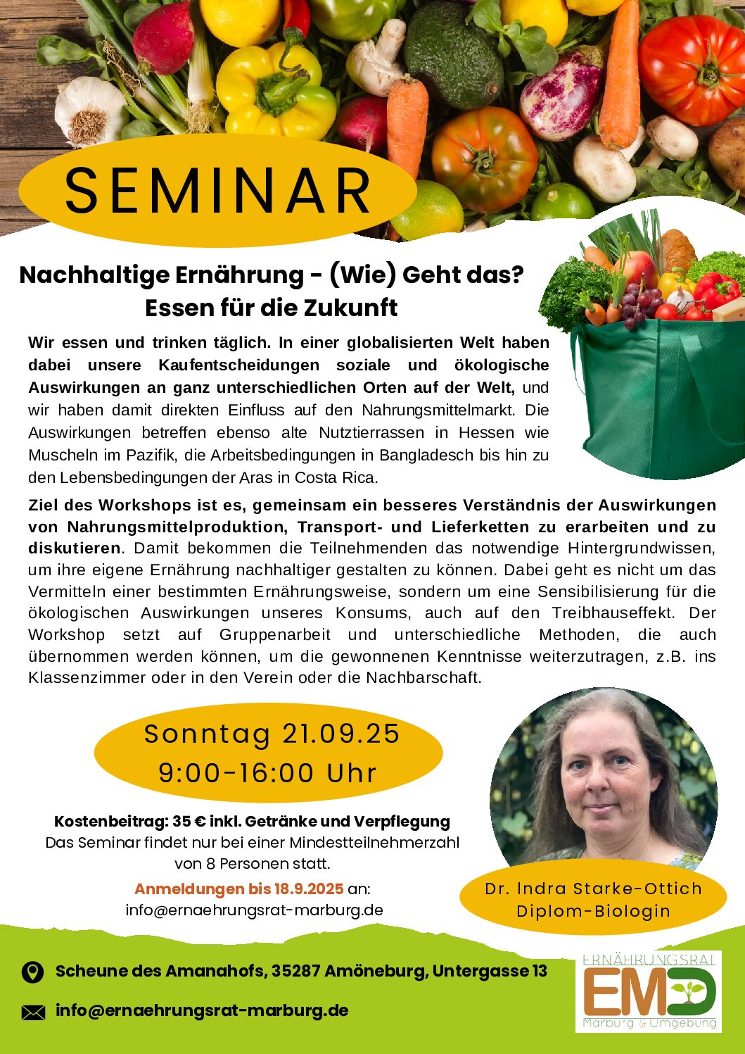 Ziel des Workshops ist es, gemeinsam ein besseres Verständnis der Auswirkungen von Nahrungsmittelproduktion, Transport- und Lieferketten zu erarbeiten und zu diskutieren. Damit bekommen die Teilnehmenden das notwendige Hintergrundwissen, um ihre eigene Ernährung nachhaltiger gestalten zu können. Dabei geht es nicht um das Vermitteln einer bestimmten Ernährungsweise, sondern um eine Sensibilisierung für die ökologischen Auswirkungen unseres Konsums, auch auf den Treibhauseffekt. Der Workshop setzt auf Gruppenarbeit und unterschiedliche Methoden, die auch übernommen werden können, um die gewonnenen Kenntnisse weiterzutragen, z.B. ins Klassenzimmer oder in den Verein oder die Nachbarschaft.